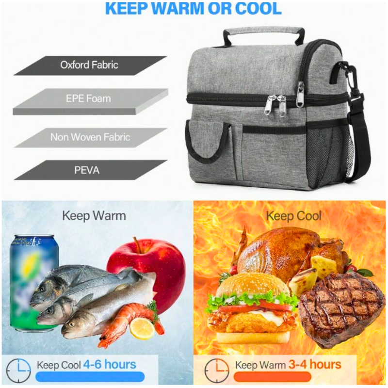 Sac à Lunch / Repas Double Compartiment Noir